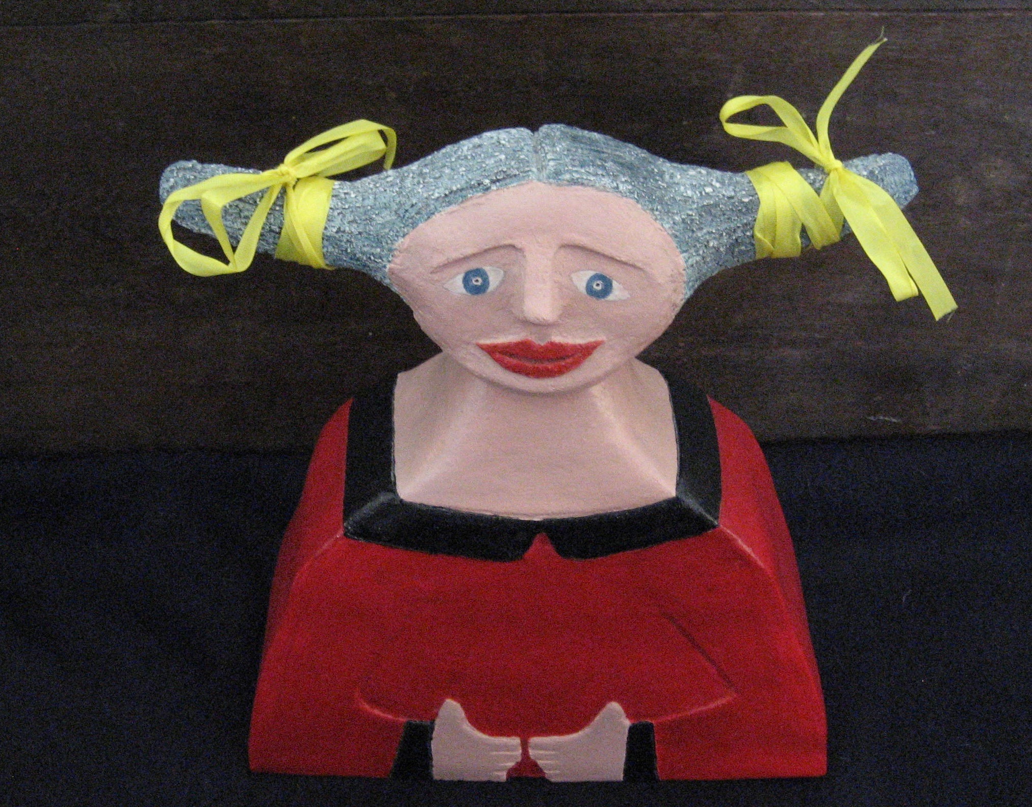 Gisteren kreeg ik dit keramische meisje cadeau van mijn vriendin Els. Ik ben er erg blij mee. Want telkens als ik deze meid bij haar tegenkwam, schoot ik in de lach.
